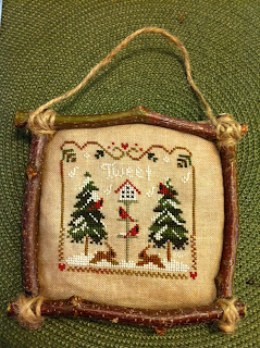 ... I "abridged" this much larger chart to make my December ornament. I wasn't really crazy about this chart when it was first published a year or two ago. But it has grown on me ... hence this ornament. I'll probably offer the chart in one of my monthly giveaways on my blog, http://oubliette-riona.blogspot.com/ ... the leaflet includes a Quaker Snowman ... I can't see myself stitching the snowman since snowmen are nowhere on my list of favored stitching motifs.Posted by riona at 11:01 PM 3 comments